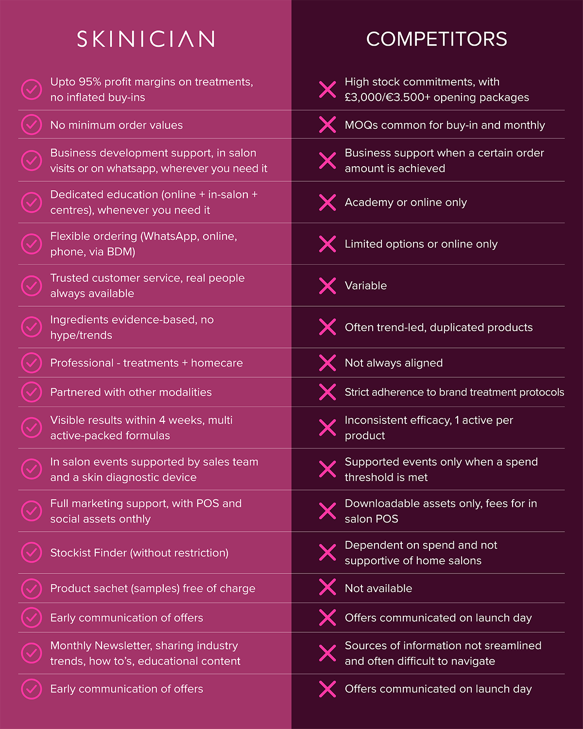When I met a member of the Skinician team ahead of my salon opening, I knew within 5 minutes that Skinician was the brand I wanted to work with. I loved everything about it! The customer service is just amazing nothing is ever too much of an ask. The support from the Skinician team has been fantastic. All our Clients have started on their Skinician journey and absolutely love all the products. Thank you for all your support!